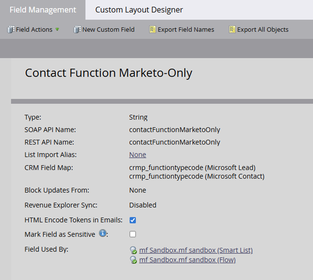 And here’s my Marketo-only custom field that I want to make the winner. It also has dependencies.